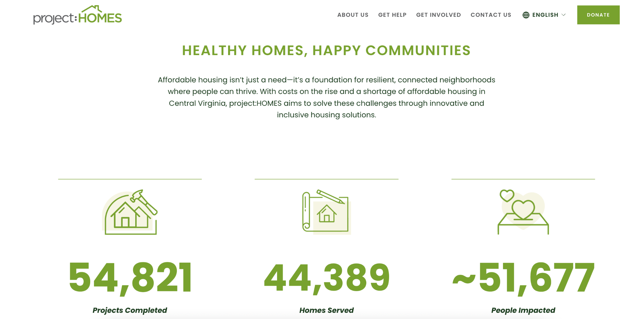 project:HOMES is a nonprofit dedicated to ensuring that every Central Virginian has access to safe and affordable housing. Collaborating with a local design company, Campfire & Co., I was responsible for refreshing copy throughout the new website to align with project:HOMES' goals and new branding.
